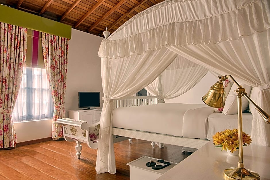 Single Heritage Suite is 377 square feet and includes a king-size bed 150-183 width plus desk, satellite tv , hairdryer, safe, bathrobes, and slippers.